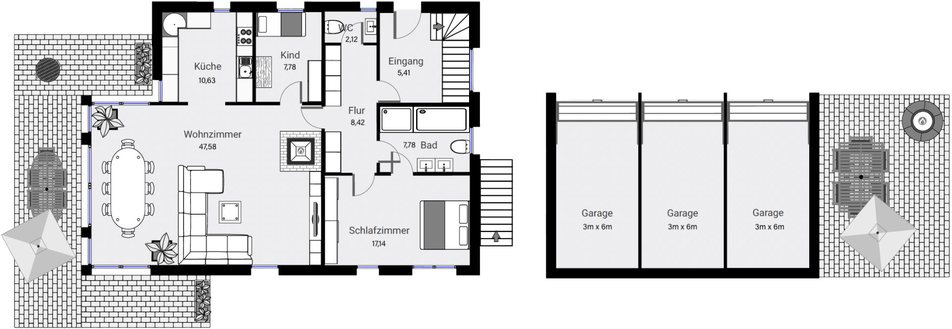 freistehendes Wohnhaus: ca. 180 m² Wohnfläche / ca. 270 m² Wohnnutzfläche